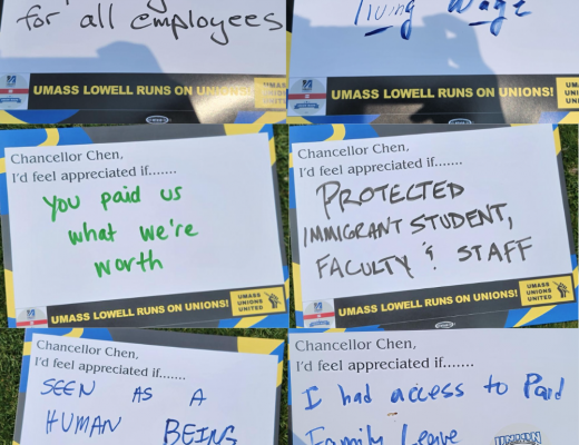 (Photo courtesy of Judith Aquino) Signs made by union members as part of the UMass Lowell Unions United action on Faculty and Staff Appreciation Day in 2025 Najifa Tanjeem, Ava Peters, Adri Jackson Connector Contributors Last semester, a UMass Lowell graduate teaching assistant (TA) had to choose between filling a prescription and paying rent. She chose rent. This…