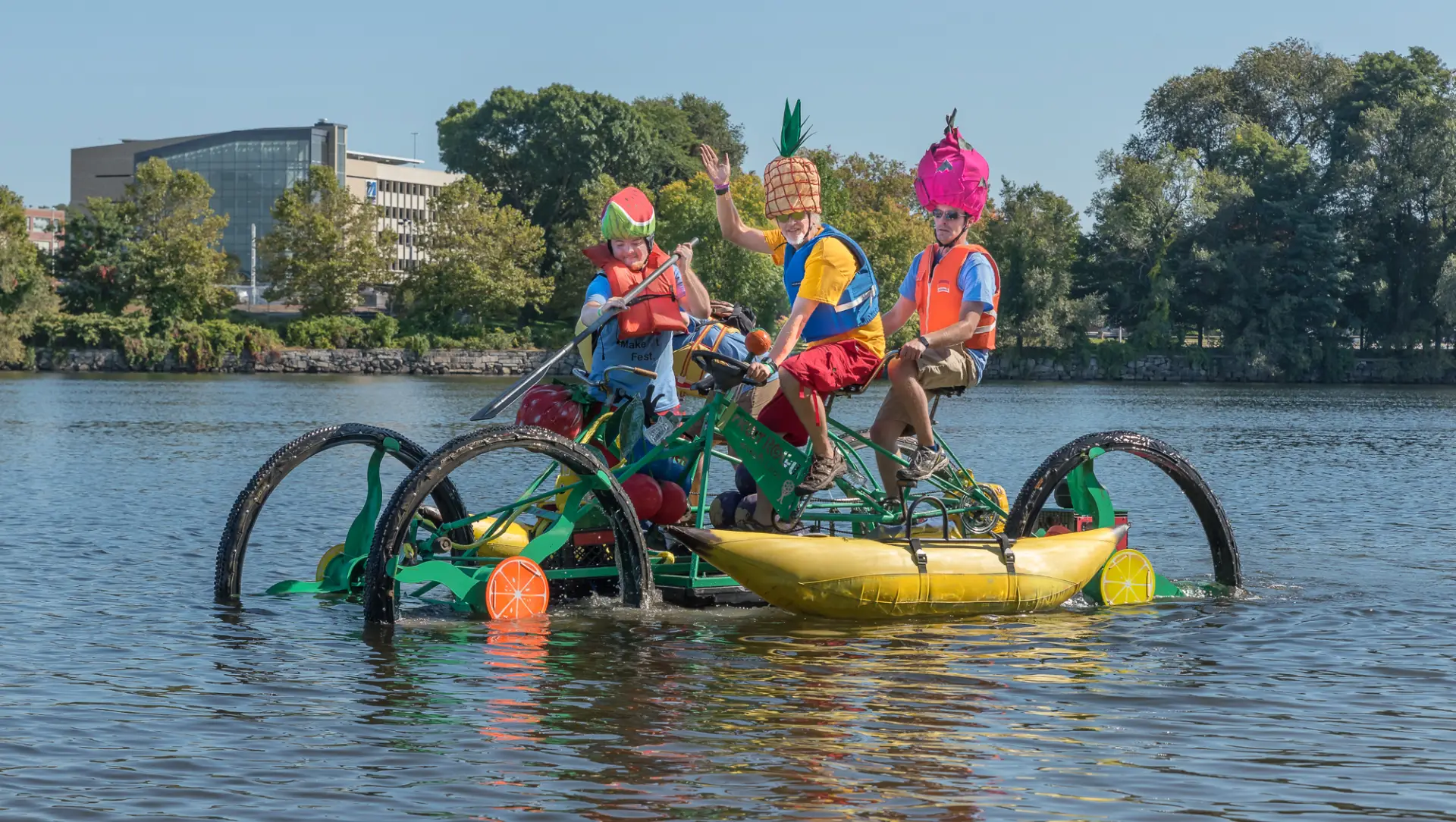 Co-founder and current race director Michael Roundy came up with the idea when he was attending Humboldt State University in California. The original kinetic sculpture race was held in Ferndale, California in 1969. When the race caught Roundy’s eye, it was a three-day event covering over 40 miles. “I always had it in the back of my mind that New England would love it as much as I did,” said Roundy, an Assistant Professor in UMass Lowell’s Art & Design Department.