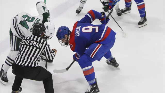 (Photo courtesy of UMass Lowell Athletics) “Senior Jack Collins gets ready for a faceoff against Mercyhurst.” Jason Cooke Connector Editor Just like that, the UMass Lowell men’s hockey team is back on track. Albeit it was against a non-conference opponent in Mercyhurst, UML swept its series on the road to bounce back from a 0-2…